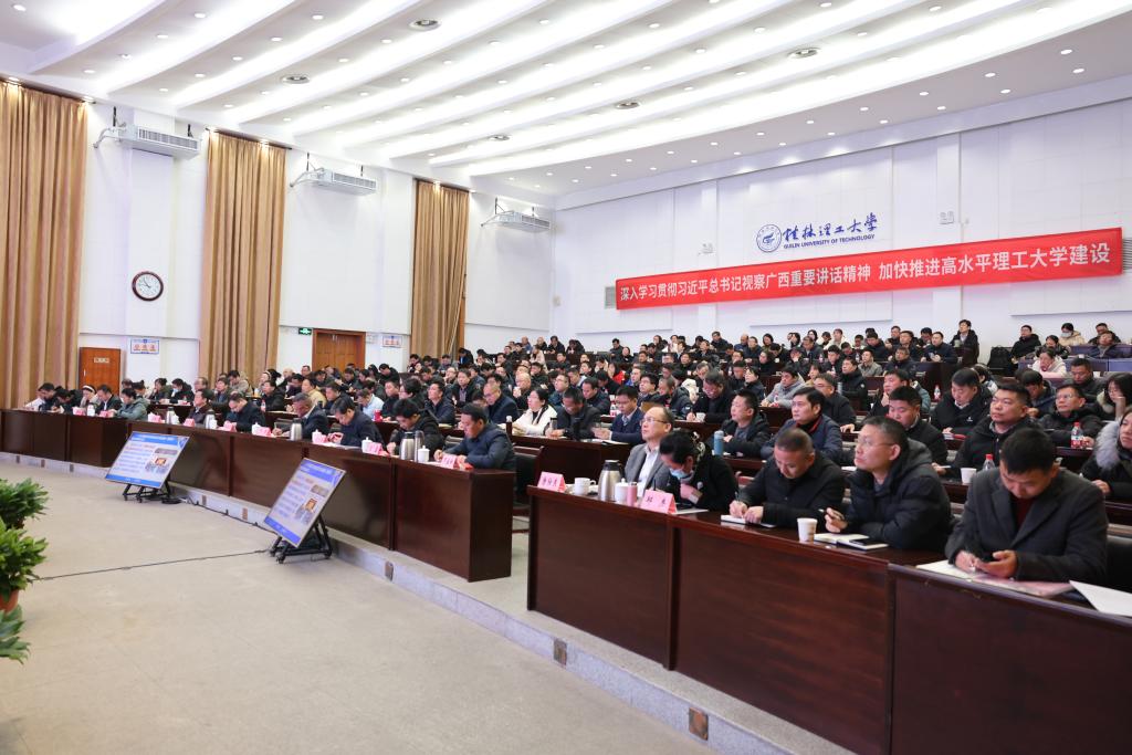 学校党委书记邓军作题为《深入学习贯彻习近平总书记视察广西重要讲话精神 加快推进高水平理工大学建设》的专题报告