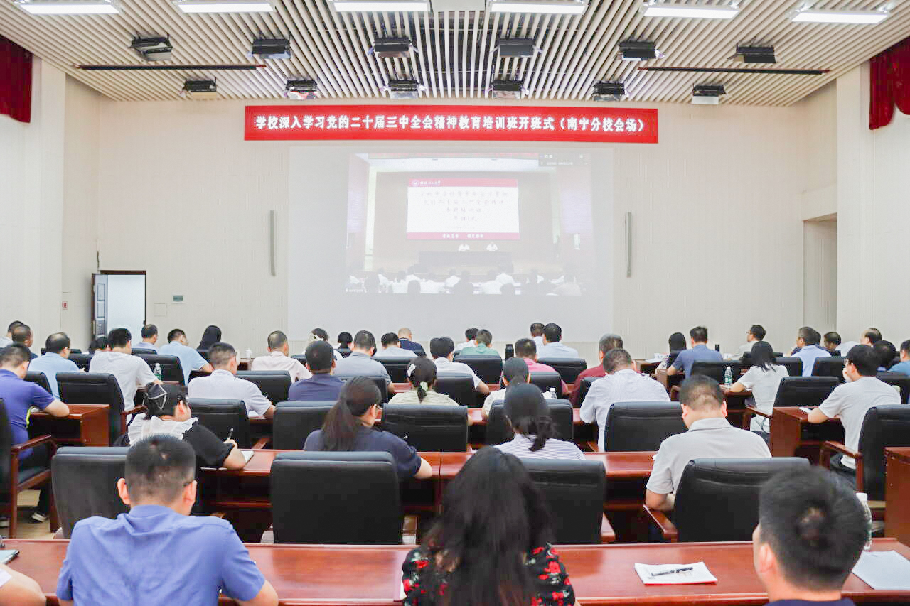 为深入学习贯彻党的二十届三中全会精神,认真贯彻落实自治区党委关于深入开展党的二十届三中全会精神教育培训有关工作要求,9月13日下午,古天乐代言太阳集团网址中层领导干部学习贯彻党的二十届三中全会精神专题培训班于屏风校区图书馆报告厅正式开班。校领导邓军、王敦球、吴志强、韦学敏、王磊、黎贞崇出席开班式。南宁分校设视频分会场。