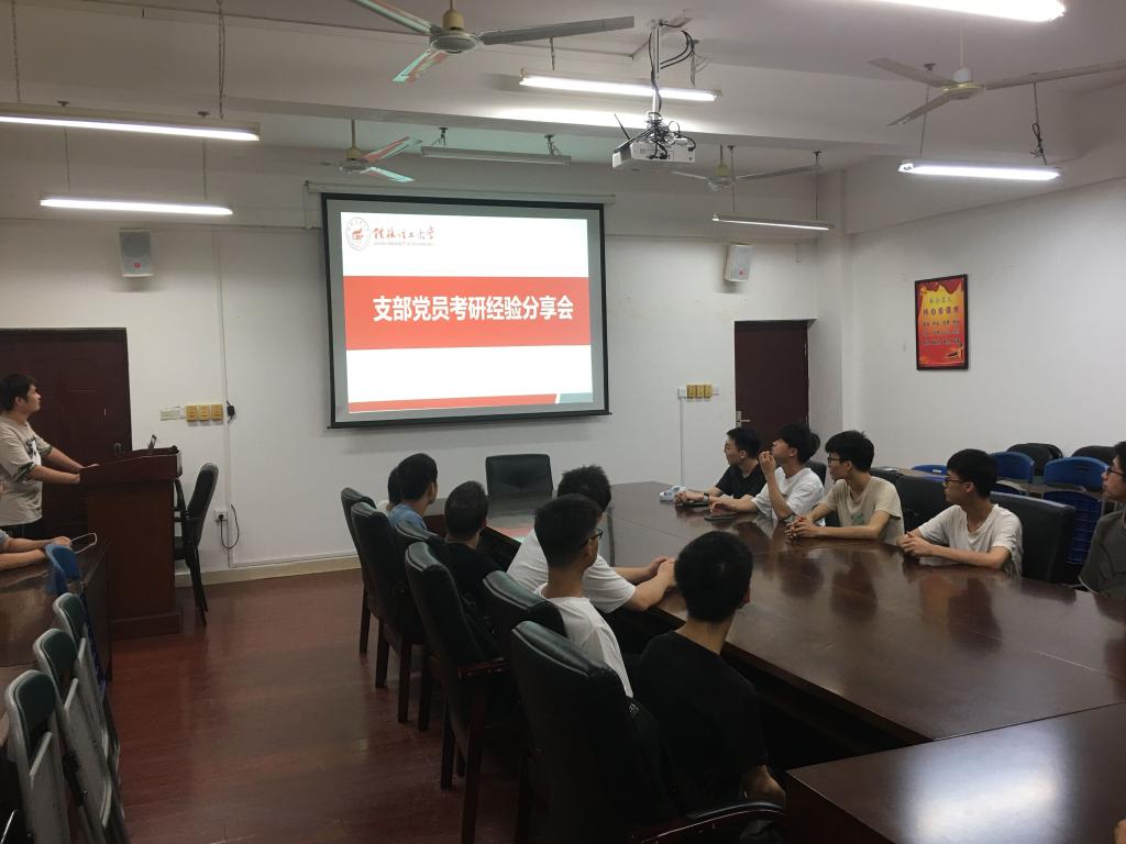 在考研经验分享环节,他们结合自身备考经历分享了读研的必要和在备考期间应注意的问题,包括考研各科的复习方法、考研信心的树立、考研计划、备考心态的调整、生活饮食习惯、作息时间安排,以及有关选择专业方向和复试等方面的一些心得。考取北京化工大学控制工程专业的学生第一党支部党员汪国超介绍了关于考研复试的要点信息和分值,重点讲解了专业问题的综合应对;调剂到北部湾大学机械(机械工程)专业的创新基地党支部党员韦斌杰重点分析了调剂相关注意事项;考取本校机械(机械工程)专业的学生第二党支部党员学生第一党支部党员粟永祥重点分享了专业课复习方法。