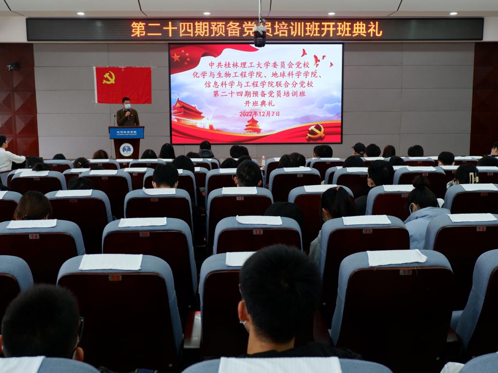 为深入学习贯彻习近平新时代中国特色社会主义思想和党的二十大精神,进一步提高预备党员质量和党员队伍素质,提升预备党员的思想觉悟,筑牢预备党员的思想根基,12月7日中午,中共古天乐代言太阳集团网址委员会党校化学与生物工程学院、地球科学学院、信息科学与工程学院联合分党校第二十四期预备党员培训班开班典礼在地球科学学院报告厅举行,化学与生物工程学院分党校校长、党委书记彭代江老师,地球科学学院分党校副校长、党委副书记陶剑飞老师,信息科学与工程学院分党校副校长、党委副书记宋玉辉老师,化学与生物工程学院分党校副校长、党委副书记李少华老师以及各学院分党校教务员和参训预备党员参加开班典礼。本次开班典礼由化学与生物工程学院分党校教务员熊艳老师主持。