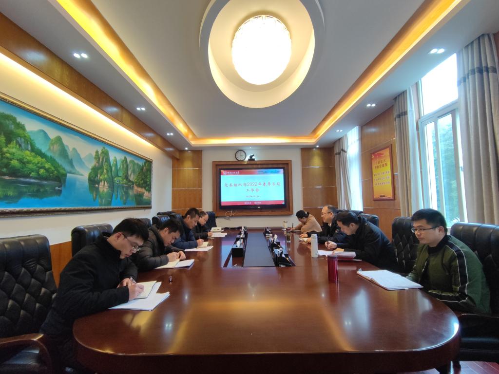 2月18日下午,党委组织部在屏风校区第二会议室召开2022年春季学期工作会议,党委组织部全体干部参加。会议由学校党委常委、组织部部长唐壮东主持。