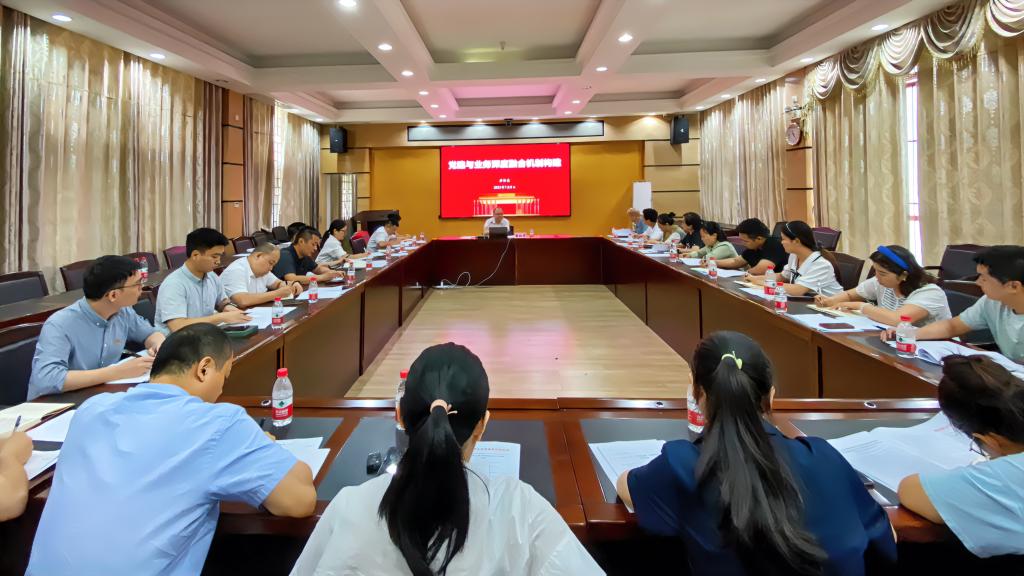为深入开展学习贯彻习近平新时代中国特色社会主义思想主题教育,7月8日,学校党委常委、组织部部长、机关党委组织统战党支部书记唐壮东同志在屏风校区教十楼309会议室为组织统战党支部全体党员、全体专职组织员讲授“党建与业务深度融合机制构建”专题党课。党课由党委组织部副部长陈小波同志主持。