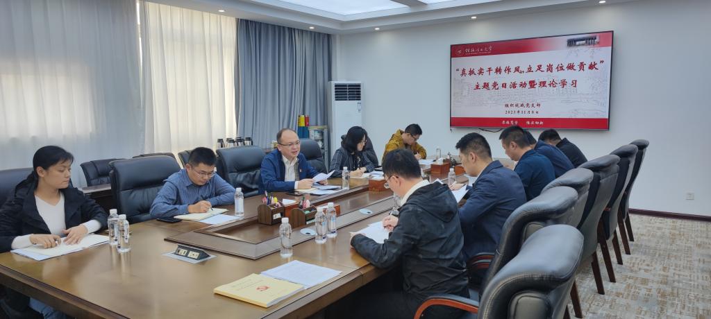 11月8日下午,组织统战党支部在雁山校区第二会议室召开“真抓实干转作风,立足岗位做贡献”主题党日活动暨理论学习会,会议由支部书记唐壮东同志主持。
