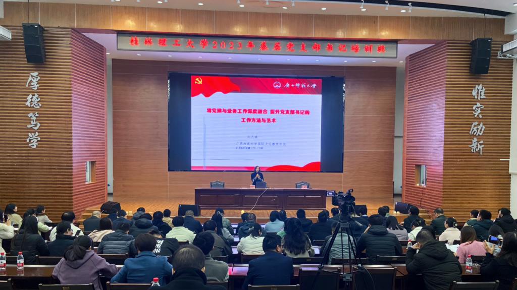 11月13日下午,学校在屏风校区图书馆报告厅举办基层党支部书记培训班,广西师范大学国际文化教育学院刘月娥书记为学校全体支部书记作专题报告,报告由组织部副部长黄敬秀主持,学校全体基层党支部书记参加,南宁分校设分会场。