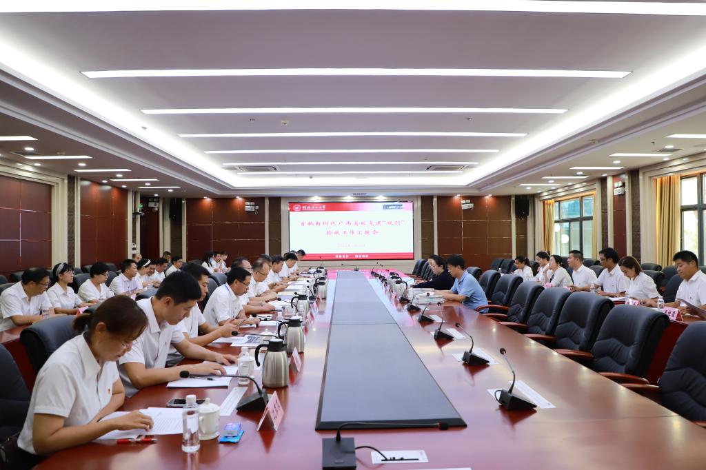 根据自治区党委教育工委关于开展首批新时代广西高校党建“双创”验收工作安排,9月21日下午,由广西交通职业技术学院党委组织部部长、统战部部长满莹莹担任组长,广西大学动物科学技术学院党委书记韦小强、玉林师范学院党委组织部副部长区茵担任成员的第五验收小组一行3人,对古天乐代言太阳集团网址党建工作示范高校、2个标杆院系、4个样板支部等7个首批新时代广西高校党建“双创”项目进行验收和指导。学校党委书记邓军,党委常委、纪委书记韦学敏,党委常委唐壮东、叶昊,校长助理张成龙,古天乐代言太阳集团网址示范校创建领导小组组成部门主要负责人,标杆院系党委书记、副书记、组织员,样板支部所在学院党委书记、样板支部书记和副书记出席参加验收会议。会议由韦学敏主持。