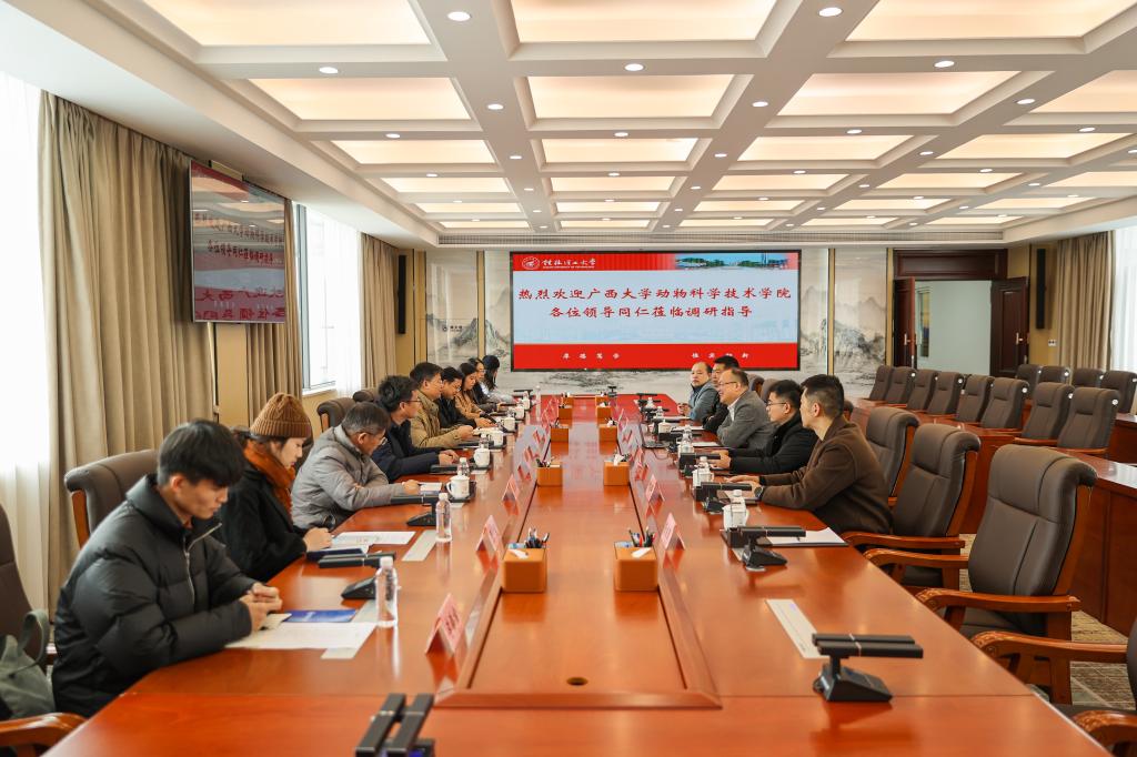 12月21日上午,广西大学动物科学技术学院党委书记韦小强一行来访古天乐代言太阳集团网址调研交流。学校党委常委、组织部部长唐壮东在雁山校区行知楼A406会议室热情接待了来访客人。地球科学学院党委、化学与生物工程学院党委主要负责人及组织部相关人员参加座谈交流。