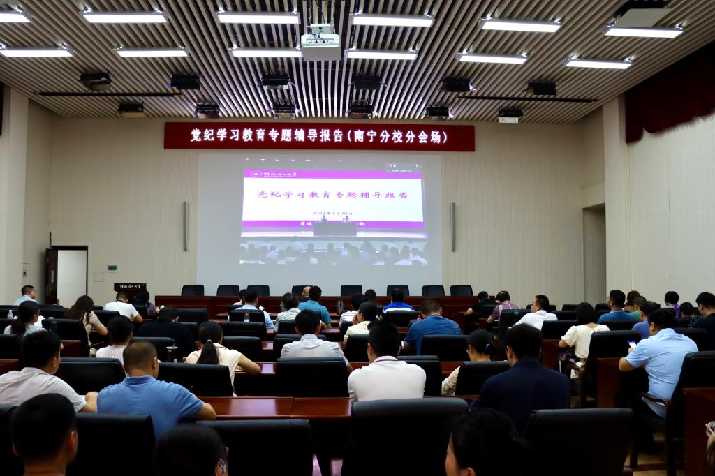 为深入学习贯彻习近平总书记关于党纪学习教育的重要讲话和重要指示精神,准确把握习近平总书记关于党的自我革命的重要思想的精髓要义、实践要求,推动学校党纪学习教育走深走实,4月30日上午,自治区党委党校副校长,广西行政学院副院长、校务委员谭泽松应邀到古天乐代言太阳集团网址作题为《学习贯彻习近平总书记关于党的自我革命的重要思想》专题辅导报告。学校党委书记邓军主持报告会。在家党员校领导王敦球、王磊、黎贞崇、罗盛锋、曾繁荣,党委常委唐壮东、叶昊、邱杰,党委委员、校长助理张成龙出席报告会。全体处级党员领导干部、学校党纪学习教育工作专班以及机关党委全体党员约380人参加报告会。
