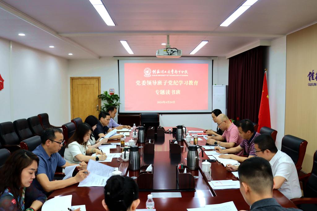 4月17日,南宁分校党委召开党纪学习教育工作部署会,传达学校党纪学习教育工作会议精神,部署分校党纪学习教育。认真制定分校党纪学习教育实施方案和专题读书班方案,于4月24日—26日开展了为期两天四次的读书班。全体党员校领导围绕“六项纪律”交流分享了学习体会,并逐章逐条认真学习了《条例》,切实推动党纪学习教育内化于心、外化于行。各党支部通过“三会一课”、主题党日等形式,逐章逐条学习了《条例》,并通过身边发生的典型案例,进行深入交流研讨,教育引导党员干部学纪、知纪、明纪、守纪,充分发挥党纪和师德师风警示教育作用,全校41个党支部有序开展,反响热烈。