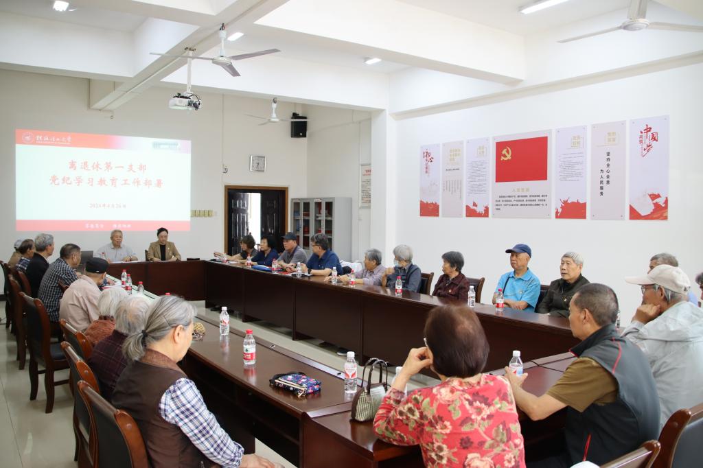 4月17日,离退休党委召开党纪学习教育工作部署会议,对党纪学习教育工作进行动员部署。同时,结合离退休党委实际,研究制定了《离退休党委党纪学习教育实施方案》,明确开展党纪学习教育的“任务书”。离退休党委根据老同志实际情况,引导党员自主学习与集中学习,线上学习与线下学习相结合的方式,推动党纪学习教育走深走实。班子成员率先举办读书班;采购《中国共产党纪律处分条例》,每个基层党支部配发6本;离退休各党支部组织党员以自主学习、在支部群中集体讨论、开展知识竞赛等方式,掀起第一波党纪学习教育的热潮。