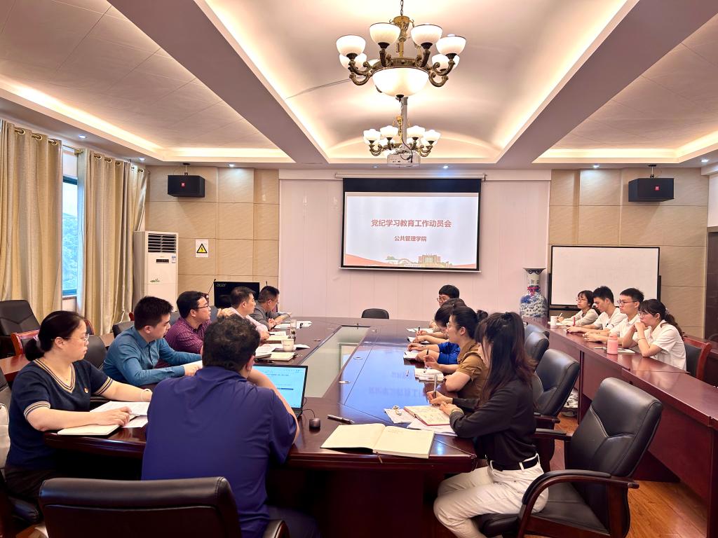 4月17日,公共管理学院党委召开党纪学习教育动员部署会,传达学习上级文件精神与工作要求,对学院党委、各党支部党纪学习教育进行部署。4月23日、26日,学院党委领导班子党纪学习教育读书班开班,要求全体党员干部要原原本本、逐章逐条学《条例》,确保学深学透学到位;要不断创新学习形式,提升学习效果;要将学习与具体工作相结合,推动各项重点工作扎实开展。读书班上,学院党委委员分别领学《条例》不同章节并开展研讨,学院党委书记做了警示案例解读,学院党委副书记、纪委书记做了《条例》新修改内容的专题辅导报告,各学员站在公共管理、社会工作、广告传播专业视角,对党纪处分实例进行了专题研讨。