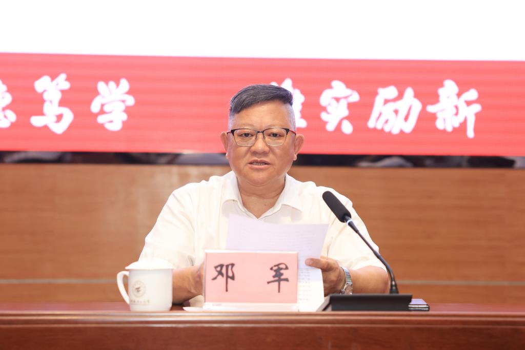邓军代表学校党委对学校开展党纪学习教育的主要做法、工作成效和经验启示进行了总结,并对推动学习教育常态化长效化作出了部署安排。他指出,党纪学习教育开展以来,学校党委认真学习贯彻习近平总书记关于全面加强党的纪律建设的重要论述和关于开展党纪学习教育的重要指示精神,坚决贯彻落实中央党的建设工作领导小组、自治区党委党的建设工作领导小组决策部署以及自治区党委教育工委有关要求,坚持把开展党纪学习教育作为坚定拥护“两个确立”、坚决做到“两个维护”的政治检验,作为加强党的纪律建设、推动全面从严治党向纵深发展的重要举措,有力推动党纪学习教育迅速启动、全面铺开、走深走实,为学校加快发展高质量发展提供了坚强纪律保障。