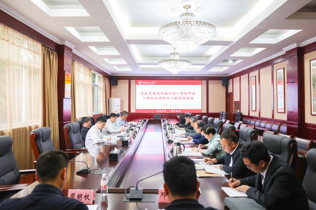 3月28日,学校党委领导班子深入贯彻中央八项规定精神学习教育读书班正式开班。校党委书记农毅主持并讲话。学校党委领导班子全体成员参加读书班。党办、组织部、校纪委相关负责人列席。