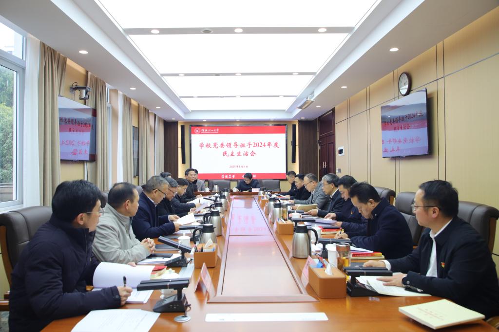 根据自治区党委的部署要求,1月9日,学校在屏风校区办公楼第一会议室召开党委领导班子2024年度民主生活会。会议紧扣“深入学习贯彻习近平新时代中国特色社会主义思想,巩固深化党纪学习教育成果,综合发挥党的纪律教育约束、保障激励作用,为进一步全面深化改革、推动学校高质量发展、推动壮美广西建设和推进中国式现代化提供坚强纪律保证”这一主题主线,认真组织学习研讨,深刻剖析典型案例,紧密联系自身思想和工作实际,深入进行对照检查和党性分析,开展批评与自我批评。