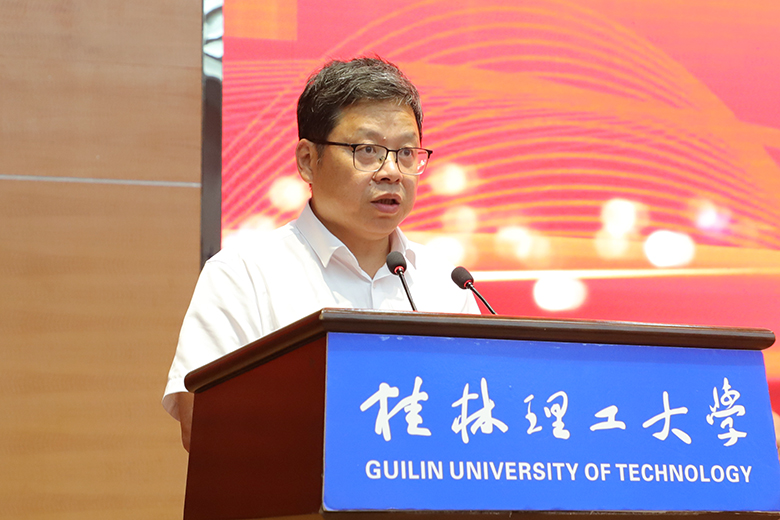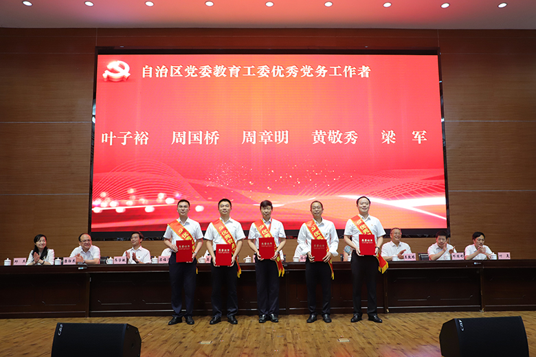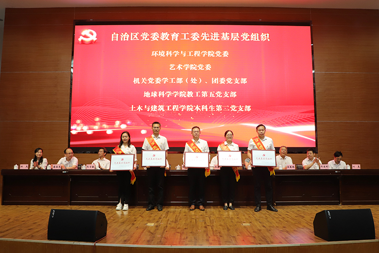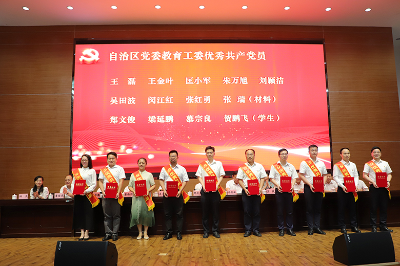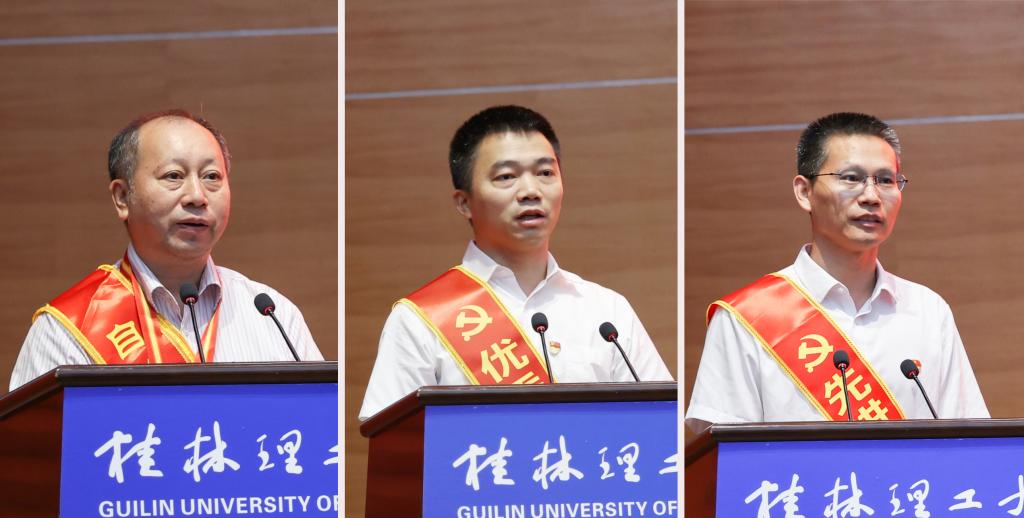 自治区优秀共产党员、土木与建筑工程学院教授陈平,自治区党委教育工委优秀党务工作者代表、南宁分校党委书记周国桥,自治区党委教育工委先进基层党组织代表、机关党委学工团委党支部书记冯广辉作为先进典型代表发言,从建设壮美广西、推进学校各项事业高质量发展等方面讲述使命与担当。