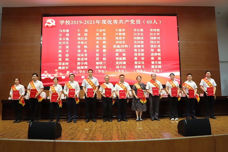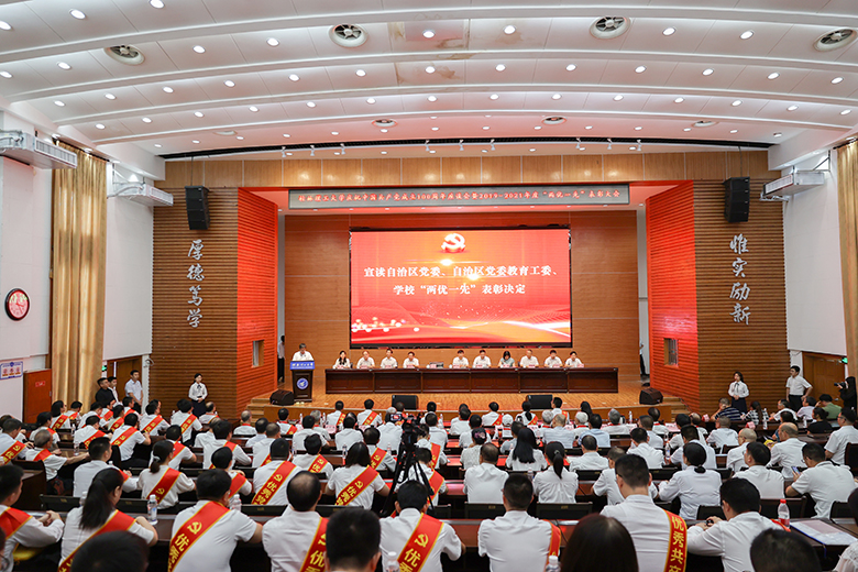 学校党委副书记吴志强宣读自治区党委、自治区党委教育工委、学校“两优一先”的表彰决定。会议表彰了自治区优秀共产党员陈平和13名自治区党委教育工委优秀共产党员、5名自治区党委教育工委优秀党务工作者、5个自治区党委教育工委先进基层党组织以及60名学校优秀共产党员、20名学校优秀党务工作者、20个学校先进基层党组织。