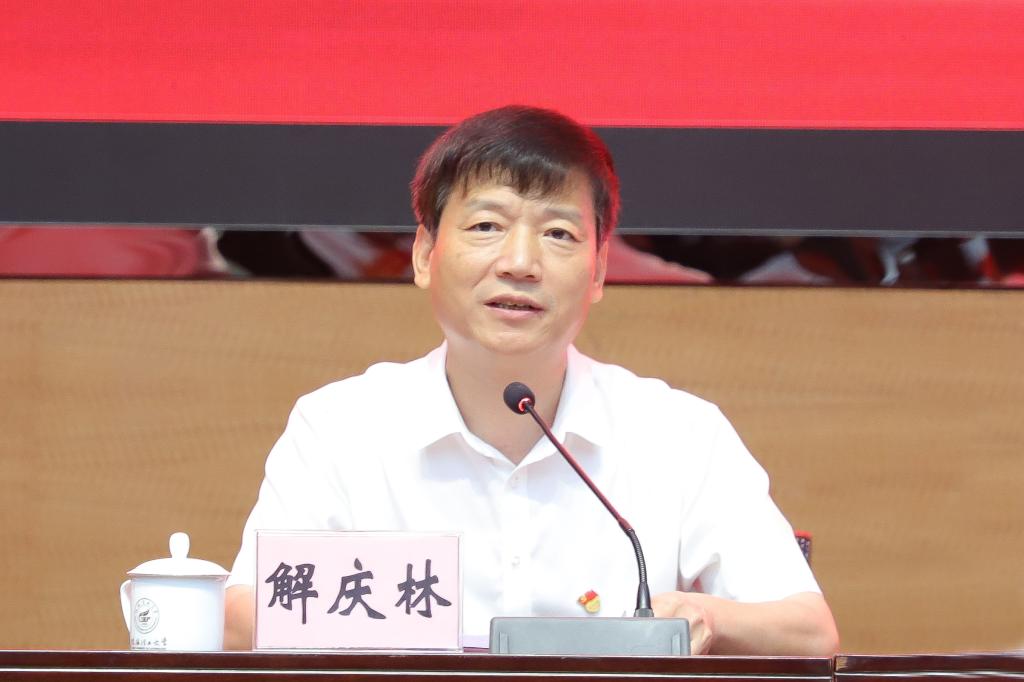解庆林深情回顾了中国共产党100年来的峥嵘岁月和光辉历程,以及学校建校65年来党的建设和各项事业取得的长足发展,并就进一步抓好学校党建工作提出三点要求:一是要持续全面推进党的建设,筑牢学校事业发展的坚强基石;二是要深入开展党史学习教育,从百年党史中汲取前进力量;三是要积极学习先进典型,在推动学校高质量发展中担当作为。他强调,各级党组织和广大党员要以庆祝中国共产党成立一百周年为新的起点,更加紧密地团结在以习近平同志为核心的党中央周围,深入学习贯彻习近平新时代中国特色社会主义思想,坚持和加强党对学校的全面领导,以更加昂扬的斗志、更加饱满的热情、更加奋发进取的作为,永葆立德树人初心,勇担为党育人、为国育才使命,锐意进取、担当实干,为早日把学校建成特色鲜明、国内知名的高水平理工大学不懈奋斗!为实现中华民族伟大复兴的中国梦作出新的更大贡献!