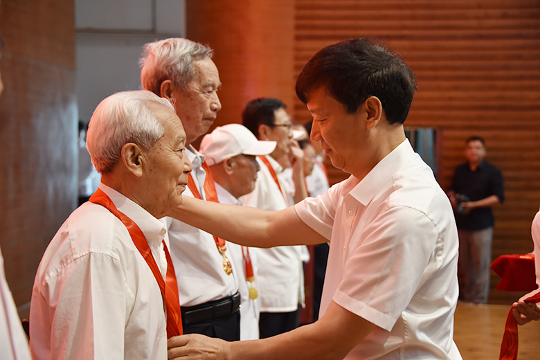 解庆林校长为在党50年及以上党员代表颁发“光荣在党50年”纪念章