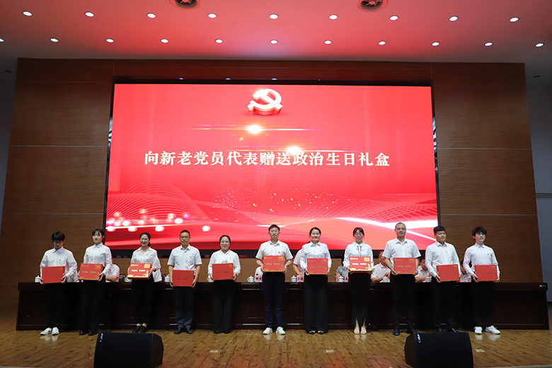 随后,会议为学校新老党员代表们举行“政治生日”仪式,并为11名党员代表赠送建党百年纪念礼盒。同时,还举行了新党员入党宣誓、老党员重温入党誓词仪式,解庆林同志领誓。