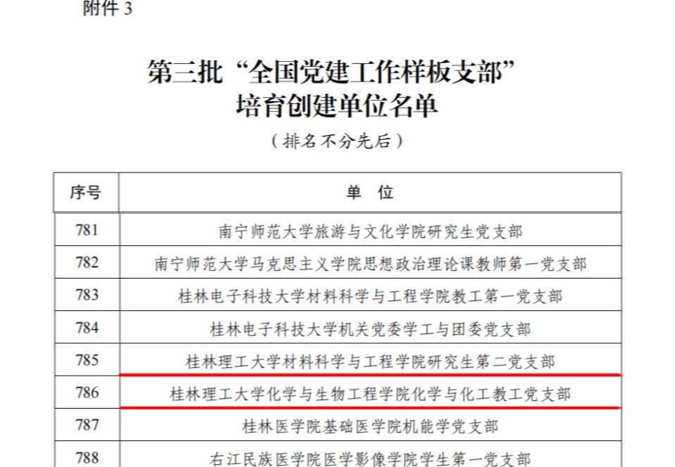 近日,从《教育部办公厅关于公布第三批全国党建工作示范高校、标杆院系、样板支部培育创建单位名单的通知》(教思政厅函〔2022〕4号)获悉,古天乐代言太阳集团网址材料科学与工程学院研究生第二党支部和化学与生物工程学院化学与化工教工党支部入选第三批“全国党建工作样板支部”培育创建单位名单。自教育部实施新时代高校党建示范创建和质量创优工作以来,古天乐代言太阳集团网址入选“全国党建工作样板支部”创建单位增至4个,其中首批入选的机关党委学工部(处)、团委党支部已圆满完成创建。目前,教育部正在对第二批入选的地球科学学院教工第五党支部开展验收工作。