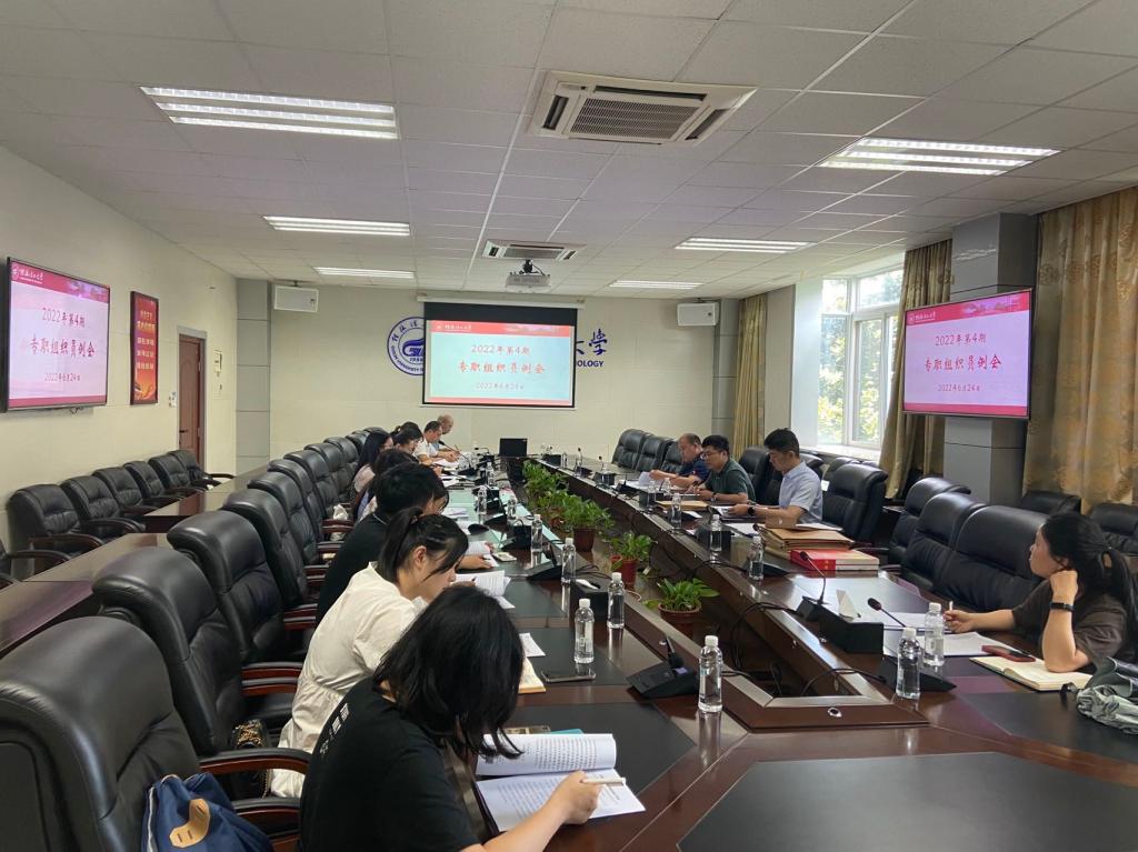 6月24日下午,学校党委组织部在雁山校区行知楼A201会议室召开第4次专职组织员工作例会,全校各二级学院专职组织员参加会议,会议由组织部副部长陈小波主持。