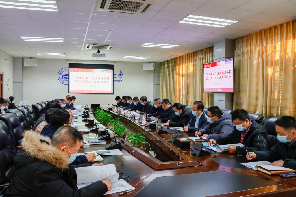 12月15日上午,学校在雁山校区行知楼A201会议室召开“清廉桂工”建设推进会暨2022年12月党建工作例会。学校党委书记邓军,党委常委、纪委书记韦学敏,党委常委、宣传部部长叶昊,党委委员、校长助理、教师工作部部长辛立章出席会议。党委职能部门主要负责人、“清廉桂工”建设领导小组办公室和各专责小组负责人、各二级党委书记参加会议。会议由学校党委副书记吴志强主持。