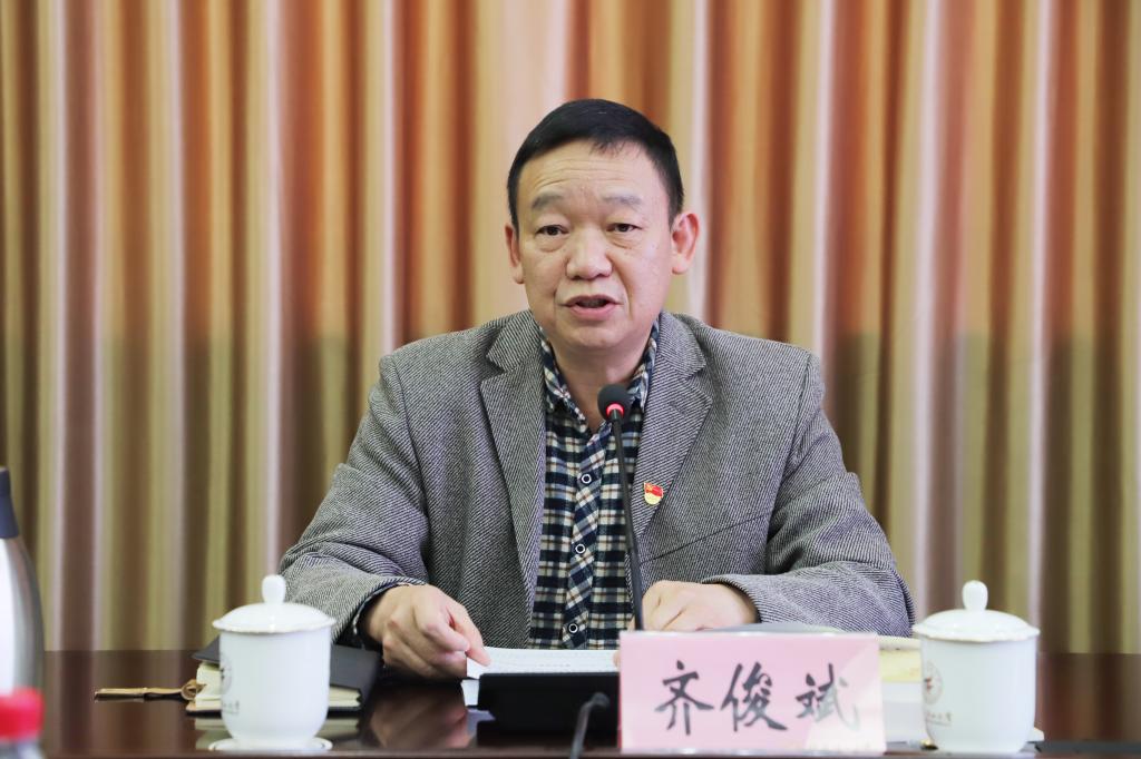 齐俊斌对各二级党委深入开展学习贯彻习近平新时代中国特色社会主义思想主题教育提出了四点要求:一是要进一步统一思想认识,提高政治站位,深刻把握主题教育的重要意义,坚持高标准、严要求、实举措,扎实推进主题教育各项任务在基层党组织全面展开;二是要学深悟透上级要求与文件精神,坚持目标导向和问题导向相统一,注重实效提升与质量提高相结合,推动主题教育各项举措走深走实;三是要把开展主题教育与学校和本单位中心工作紧密结合起来,把学习成果转化为促进事业发展的实际成效;四是要在推动高质量发展上创特色,不断增强针对性和实效性,以提高师生群众获得感、幸福感、安全感来检验主题教育成果。