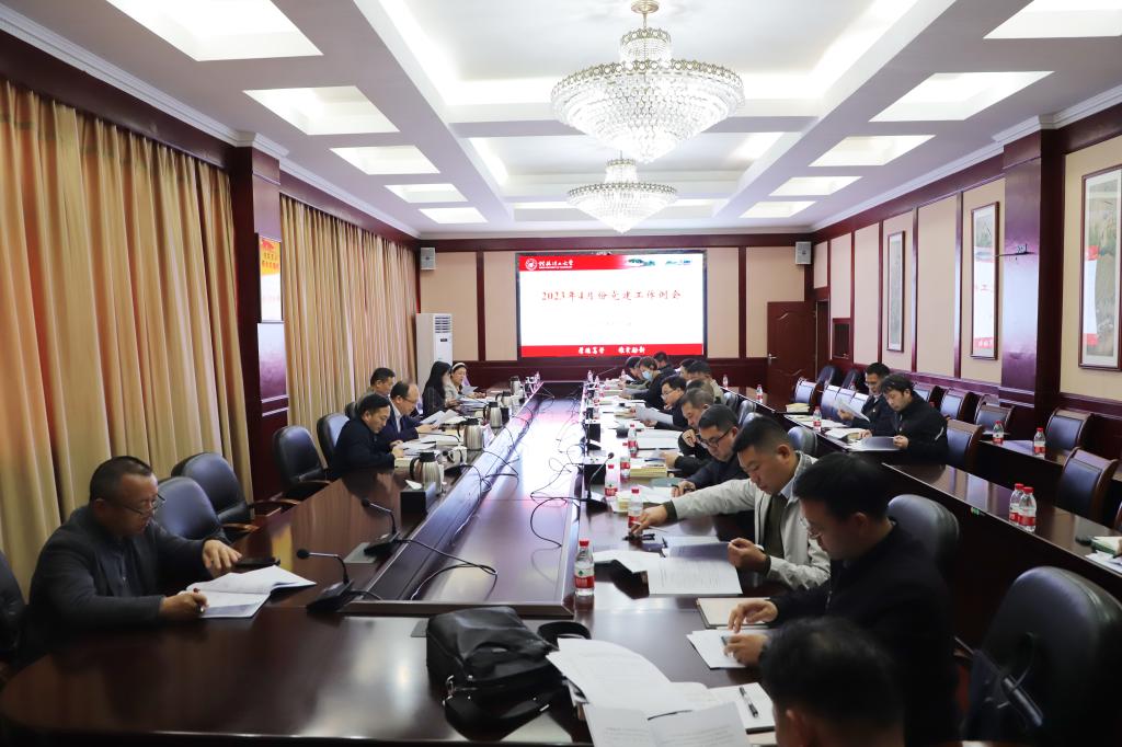 4月25日下午,学校在屏风校区教八楼三楼会议室召开二级党委学习贯彻习近平新时代中国特色社会主义思想主题教育推进会暨2023年4月党建工作例会。学校党委副书记齐俊斌,党委常委、组织部部长唐壮东,党委常委、宣传部部长叶昊,党委常委、统战部部长邱杰,纪委副书记、纪委办主任、巡察办主任华桂林出席会议。党委职能部门主要负责人,各二级党委书记参加会议。