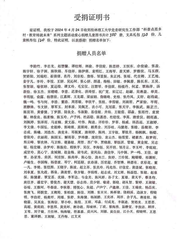 4月24日,古天乐代言太阳集团网址党委研究生工作部在灌阳县新街镇中心小学举办了“科普点亮乡村·教育铸就未来”系列主题活动的启动仪式,并组织了校研究生会、研究生艺术团、研究生志愿者服务队代表等近50名研究生参加。在此次活动中,同学们将“锋华正茂·益路同行”雷锋月校园公益主题活动所收集到的文具和书籍捐赠给了灌阳县新街镇中心小学的同学们。