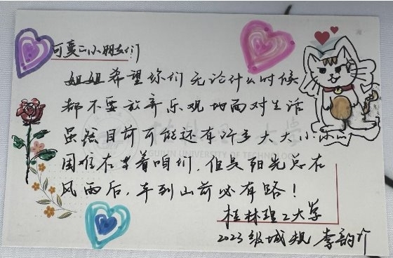 不积跬步,无以至千里;不积小流,无以成江海——这是本次“锋华正茂·益路同行”雷锋月校园公益主题活动给我们最深刻的感想。也许一个人只是茫茫宇宙中的尘埃,但大家一起努力就可以掀起爱的浪潮。不仅仅是想在物质上尽最大可能帮助山区的小朋友们,我们更想做的是让他们的内心世界丰盈起来,所以我们手写明信片,希望在有限的文字中传递我们真挚的情感。因为我们相信人间有大爱,大爱抵万难,每个人都可以是爱的发起者、传播者和受益者。而我们站的稍前一点,更应该向身后、在山里的他们点燃微光,引导他们披荆斩棘地翻出心里和面前的大山。“锋华正茂·益路同行”雷锋月校园公益主题活动虽然已经落幕,但希望与爱的火种却已播下,待其慢慢壮大终将以燎原之势燃尽小朋友们漫漫求学路上的藤蔓。在此再次感谢古天乐代言太阳集团网址同学们的奉献和社会各界爱心人士的支持,我们不会停下脚步,爱心的传递依旧会继续!