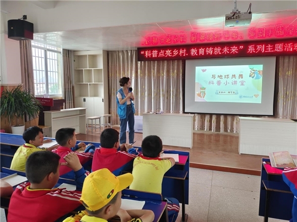 在捐赠仪式后,研究生志愿者们还开展了丰富多彩的科普活动,新街镇中心小学学生度过了从“初识--与地球共舞”到“探索--神秘的物质”的科普之旅,在“创造--智慧的改造”创意装饰画设计课程中培养起自己的观察力、专注力,从黑白灰、比例、造型等方面感受美术创作的妙趣及创作过程中探索的乐趣。