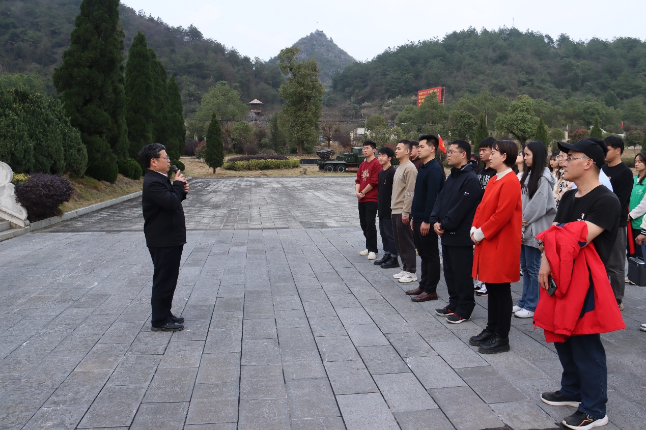 在灌阳县考察走访期间,吴志强还带领大家前往红军长征湘江战役灌阳新圩阻击战纪念园追寻红色足迹,重温历史记忆,传承革命精神,并作了题为《对党忠诚,做一名合格的研究生》的微党课。他勉励大家要坚定理想信念,强化使命担当,积极响应服务国家乡村振兴战略,为新时代乡村全面振兴贡献“桂工”青年智慧和力量;要坚持教学相长,练就过硬本领,充分发挥理工类专业人才优势,赋能乡村建设,推动乡村经济可持续发展;要提升人文素质修养,夯实专业基础,勇于扎根基层,攻坚克难,将科研论文写在祖国大地上,做一名合格的新时代研究生。