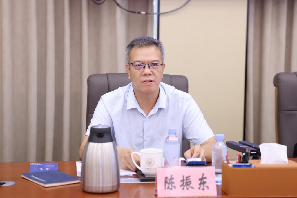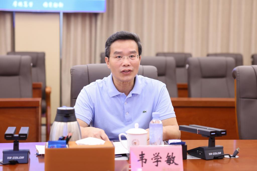7月4日,广西农业科学院副院长陈振东一行来校调研。自治区纪委监委驻校纪检监察组组长,学校党委常委、纪委书记韦学敏在雁山校区热情接待了陈振东一行。