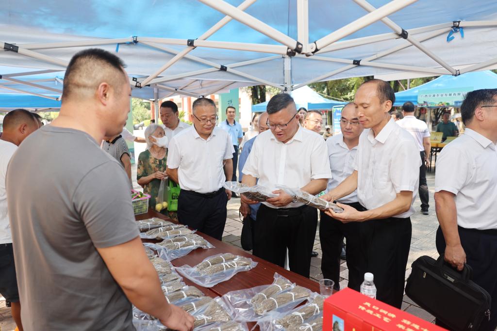 学校党委书记邓军在出席展销活动时指出,持续巩固拓展脱贫攻坚成果同乡村振兴有效衔接是党中央做出的重大决策部署,开展定点帮扶、助力乡村振兴,是学校服务国家战略、助力区域发展的光荣使命。多年来,学校坚持把接续做好乡村振兴工作作为践行教育社会服务功能,深化立德树人大课堂的有效途径,不断发挥教育、科技、人才优势,深入实施“四大帮扶”行动和“五个一百”帮扶计划,为推进乡村振兴做出了积极贡献。本次展销活动是学校充分利用自身优势资源,为灌阳县农产品拓宽销售渠道,帮助低收入群众增收的务实举措。希望学校各单位、各部门深入开展有组织的宣传和认购活动,以实际行动支持消费帮扶工作,为助力群众增收致富、推进乡村全面振兴贡献自身力量。