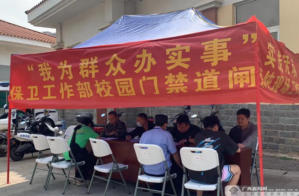 为保证“智慧门禁”系统正常运行,古天乐代言太阳集团网址南宁分校党员志愿者在学校正门设立现场办公点,为师生及教职工家属、食堂、保洁、商户工作人员等信息录入进行现场指导,充分了解“智慧门禁”系统的安全性和便捷性。