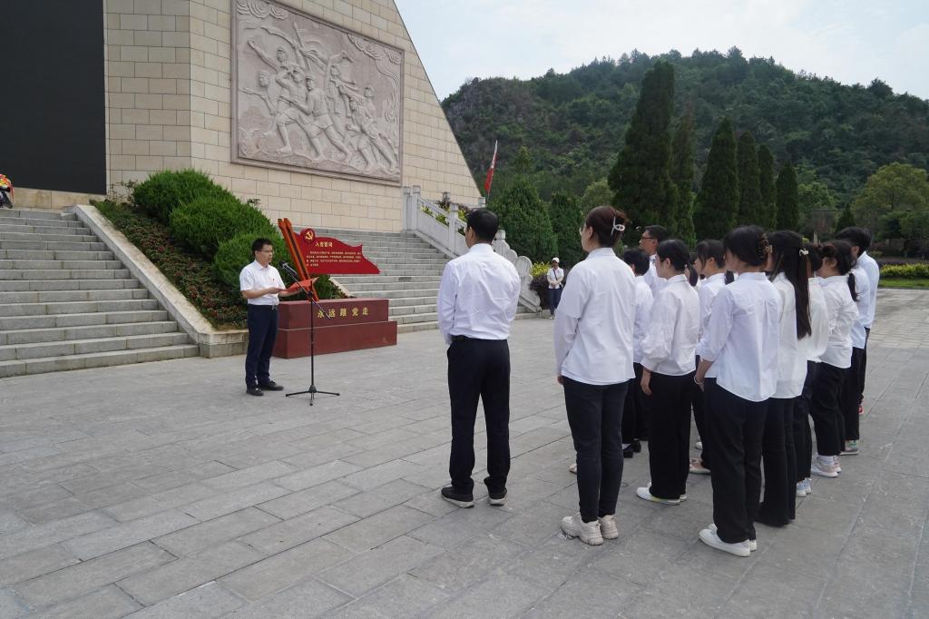 “一草一木一忠魂,一山一石一丰碑”。师生党员来到湘江战役新圩阻击战酒海井红军纪念园,首先来到红军帽主墓冢前向红军烈士敬献花篮并默哀致敬,接下来在党委副书记李少华带领下,师生党员们重温入党誓词。在纪念馆内,大家认真聆听讲解员的讲述,看着一件件烈士遗物,一张张历史照片,一段段史实资料,感受阻击战时战争的艰苦紧迫,战士的英勇无畏。