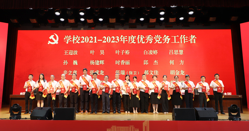 伴随着雄壮的国歌声,大会拉开帷幕。会议宣读了学校“两优一先”表彰决定,在热烈喜庆的氛围中,与会领导为受表彰的100名优秀共产党员、20名优秀党务工作者、20个先进基层党组织颁奖。颁奖结束后,优秀共产党员代表、优秀党务工作者代表、先进基层党组织代表分别作了交流发言,他们结合自身工作和学习实际,以鲜活的事例和朴实的语言,表达了对党和国家的赤诚情怀和无限热爱。