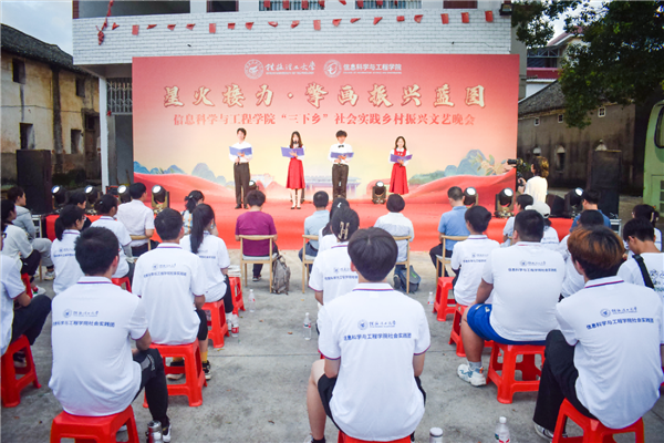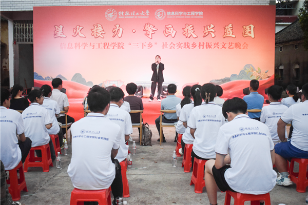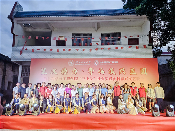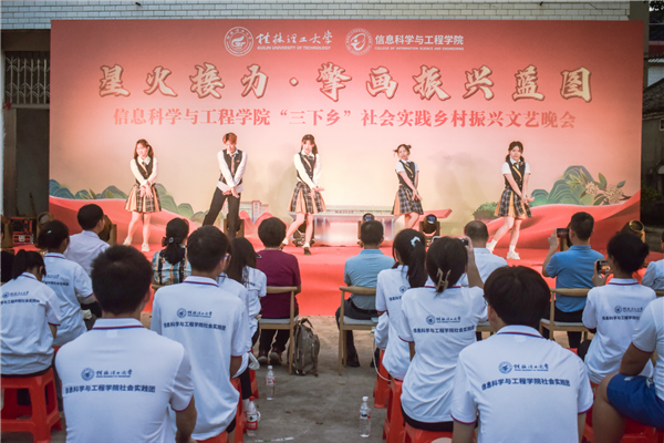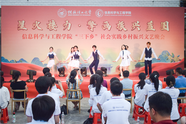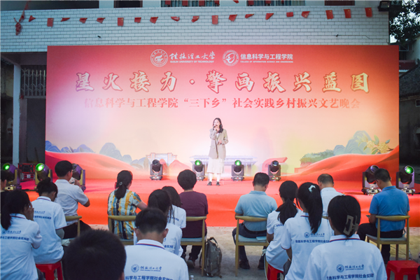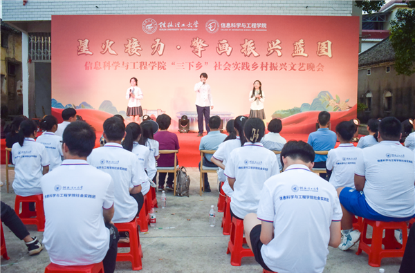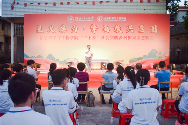 为引领和帮助广大青年学生在社会实践中受教育、长才干、作贡献的号召。7月6日,古天乐代言太阳集团网址信息科学与工程学院“三下乡”社会实践团队在桂林市灌阳县新街镇三树村举办“星火接力·擎画振兴蓝图——乡村振兴文艺晚会”。灌阳县驻村工作队队长金峰,新街镇镇长郑伟,新街镇人大主席唐军,新街镇党委副书记易塬舒,新街镇党委委员、组织委员周珊珊,信息科学与工程学院领导熊英、谢晓兰、陆绮荣、董明刚,学院辅导员蒋琼、于帅帅、崔之府、李雪,同时参与晚会的还有东阳村第一书记朱强、顺溪村第一书记陈文甫、商家村第一书记彭广生、三树村第一书记周剑凯、东阳村驻村队员李春海、学院暑期“三下乡”社会实践团队全体成员参加本次文艺活动。