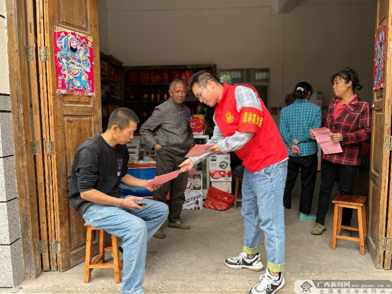 陈回归在宣传森林防火令。林理工大学南宁分校 供图