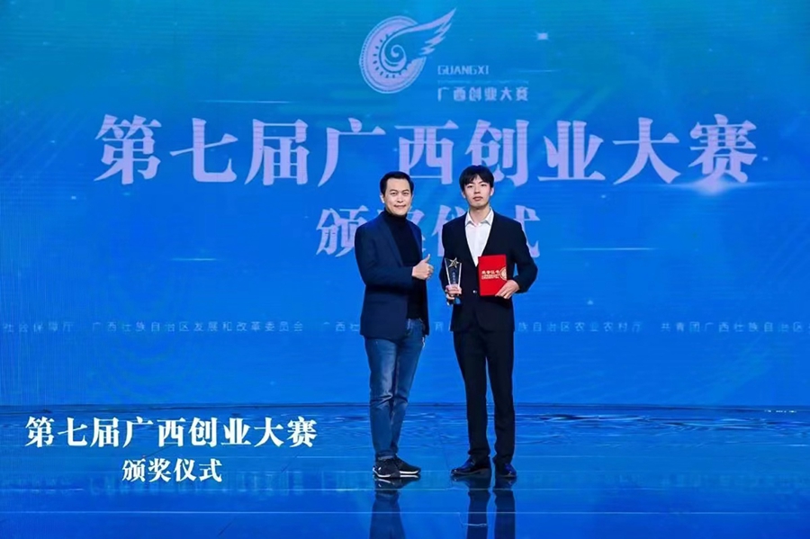 2021年12月21日,匡毅在第七届广西创业大赛中获广西大学生创业明星奖。 受访者供图